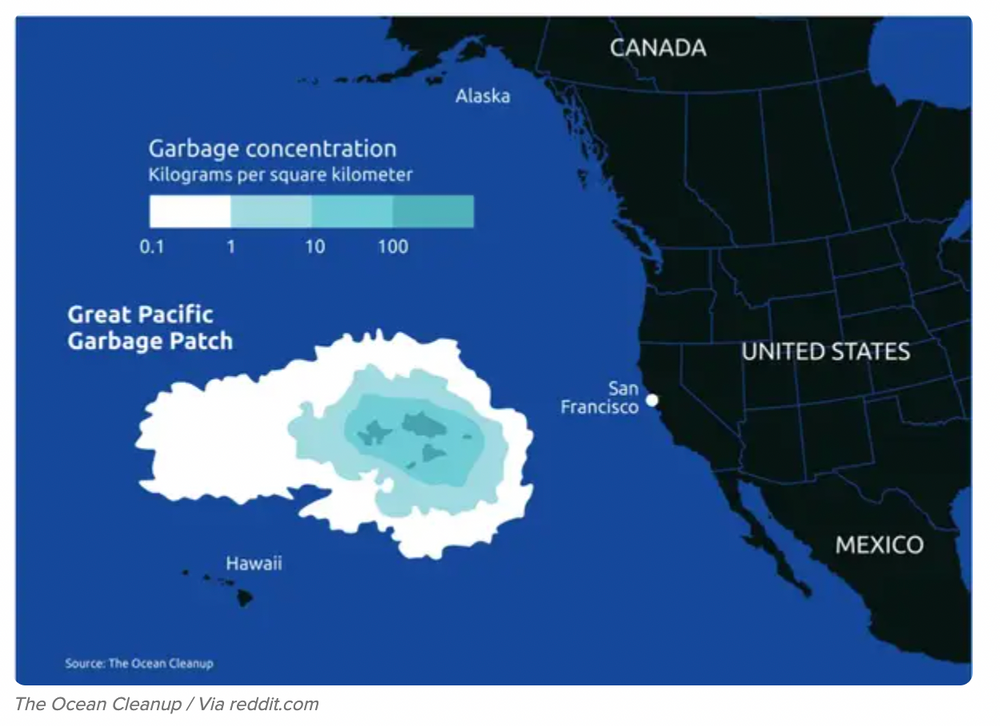 between Hawaii and the western coast of North America. It is alarmingly large.